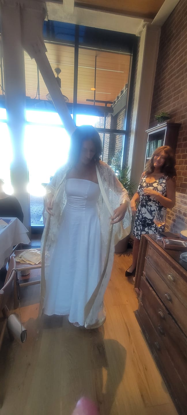 We presented this pegnoir set to the bride-to-be We were thrilled to present it and she was even more excited to receive this luxurious gift!