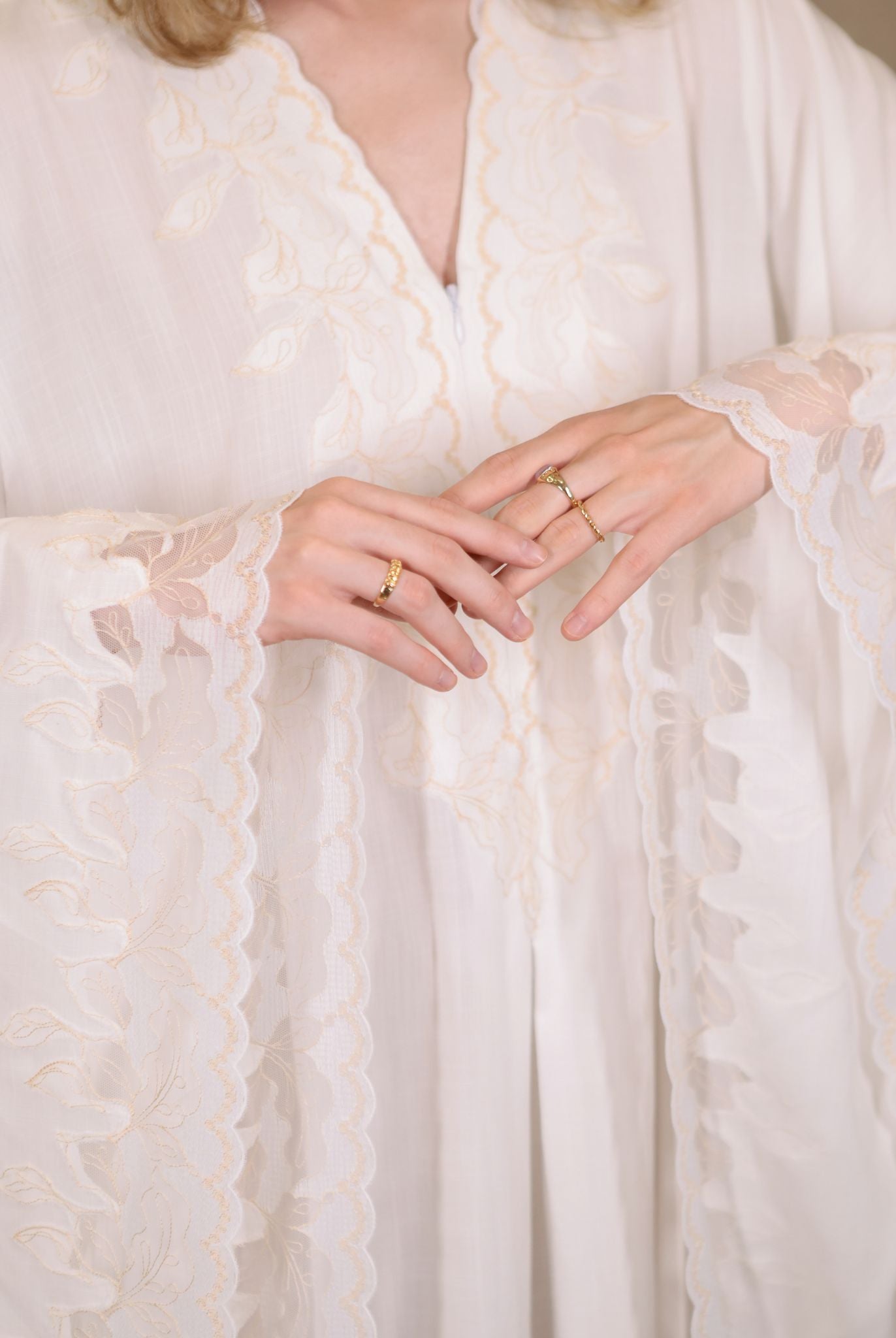 Wrapped in delicate lace, the Annalise Set brings a touch of graceful romance to your maternity moments. The lace robe, designed with intricate detailing, drapes beautifully over the body, enhancing the soft, feminine aesthetic of the set. The soft cotton nightgown drapes effortlessly, with a gentle elastic under the bust for comfort and a flattering shape. Tiny pearl buttons add a charming finish, offering easy and graceful access for nursing.