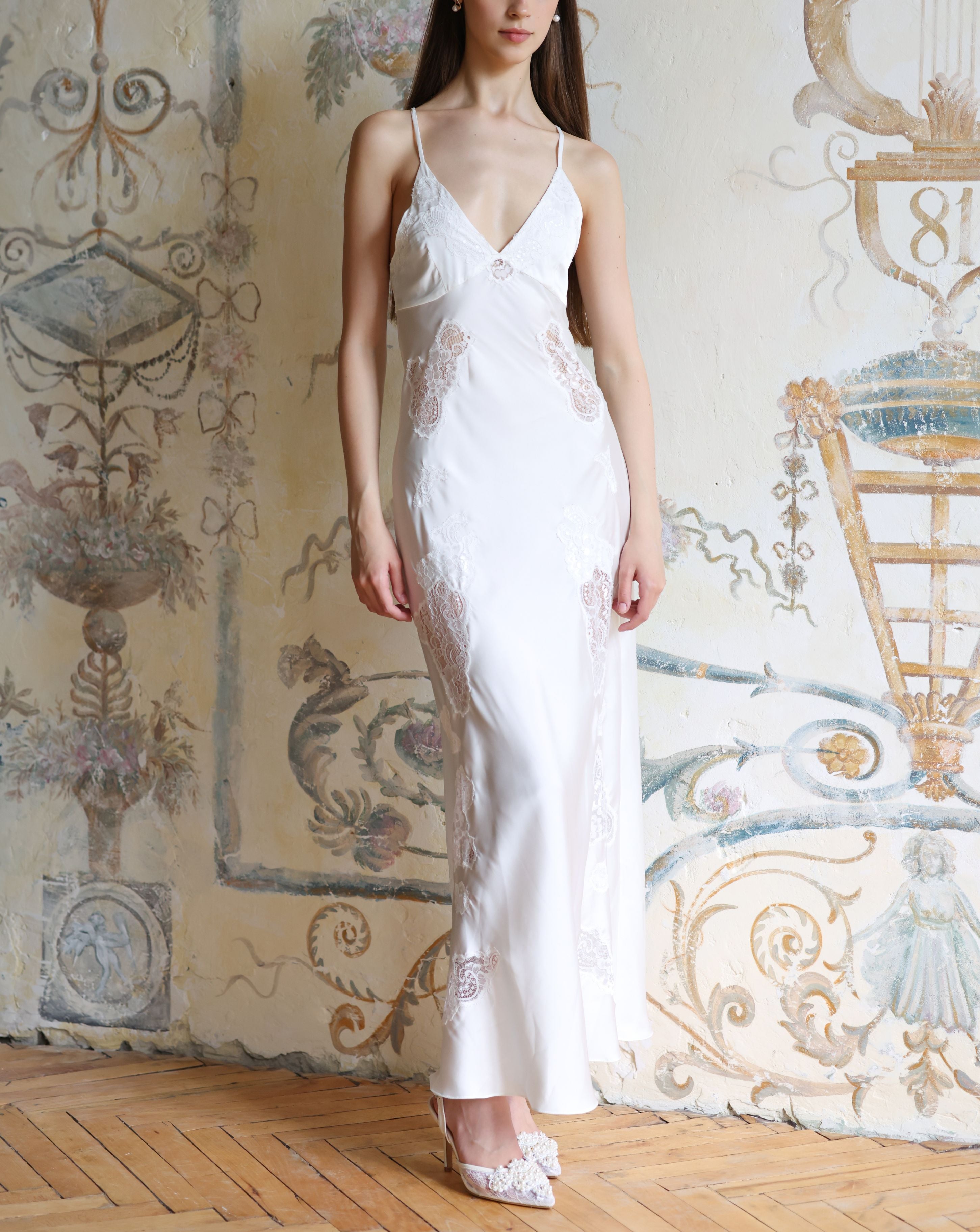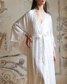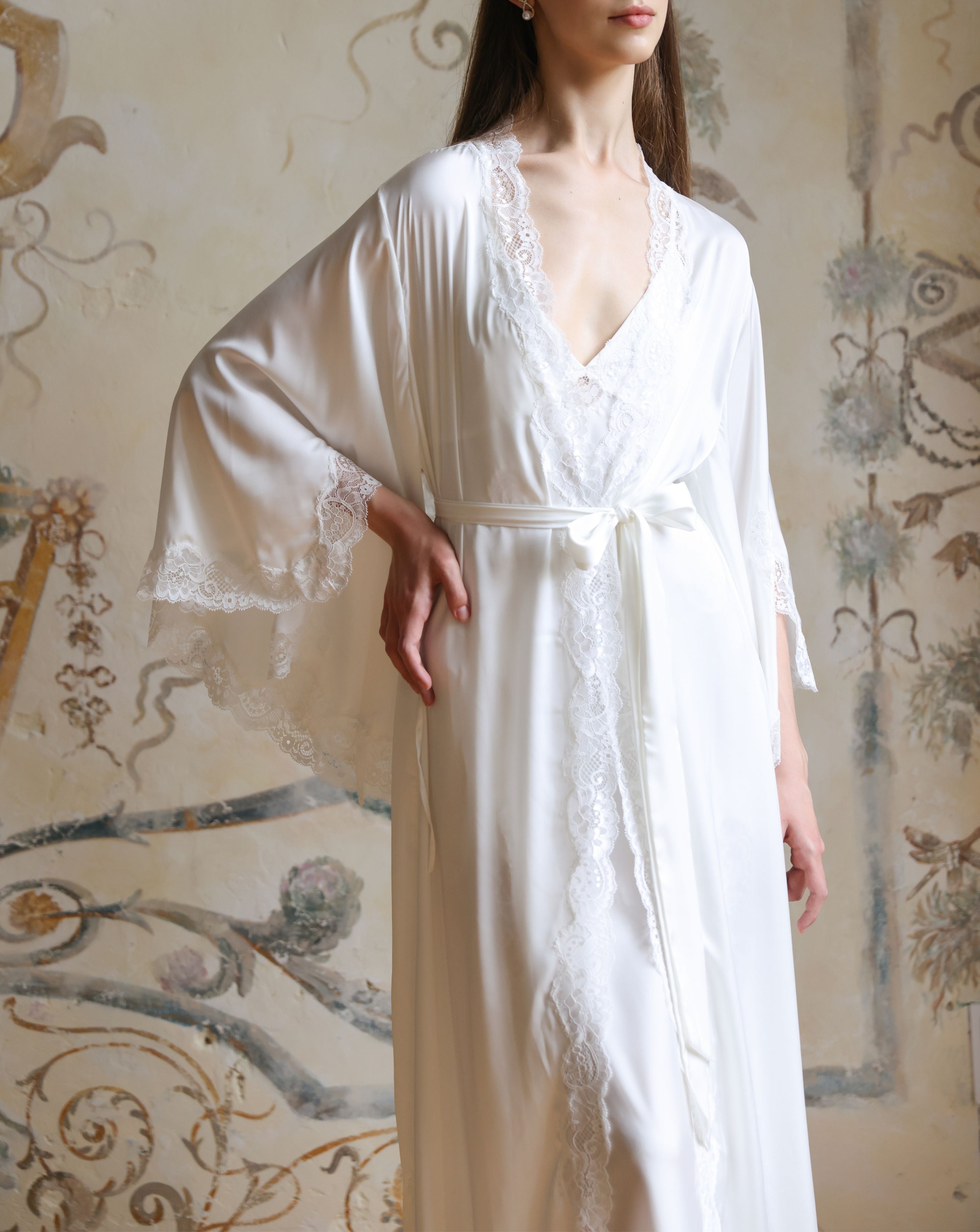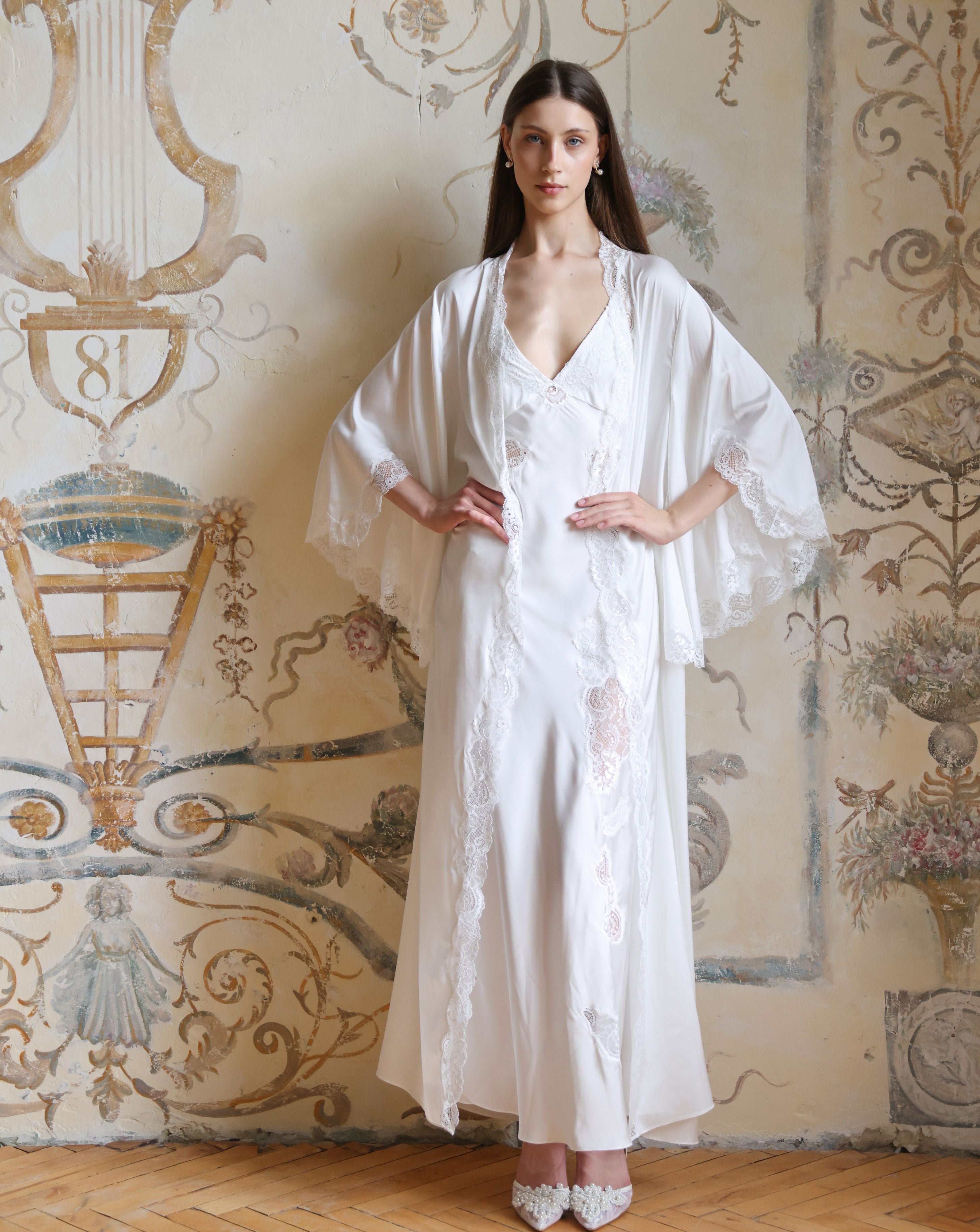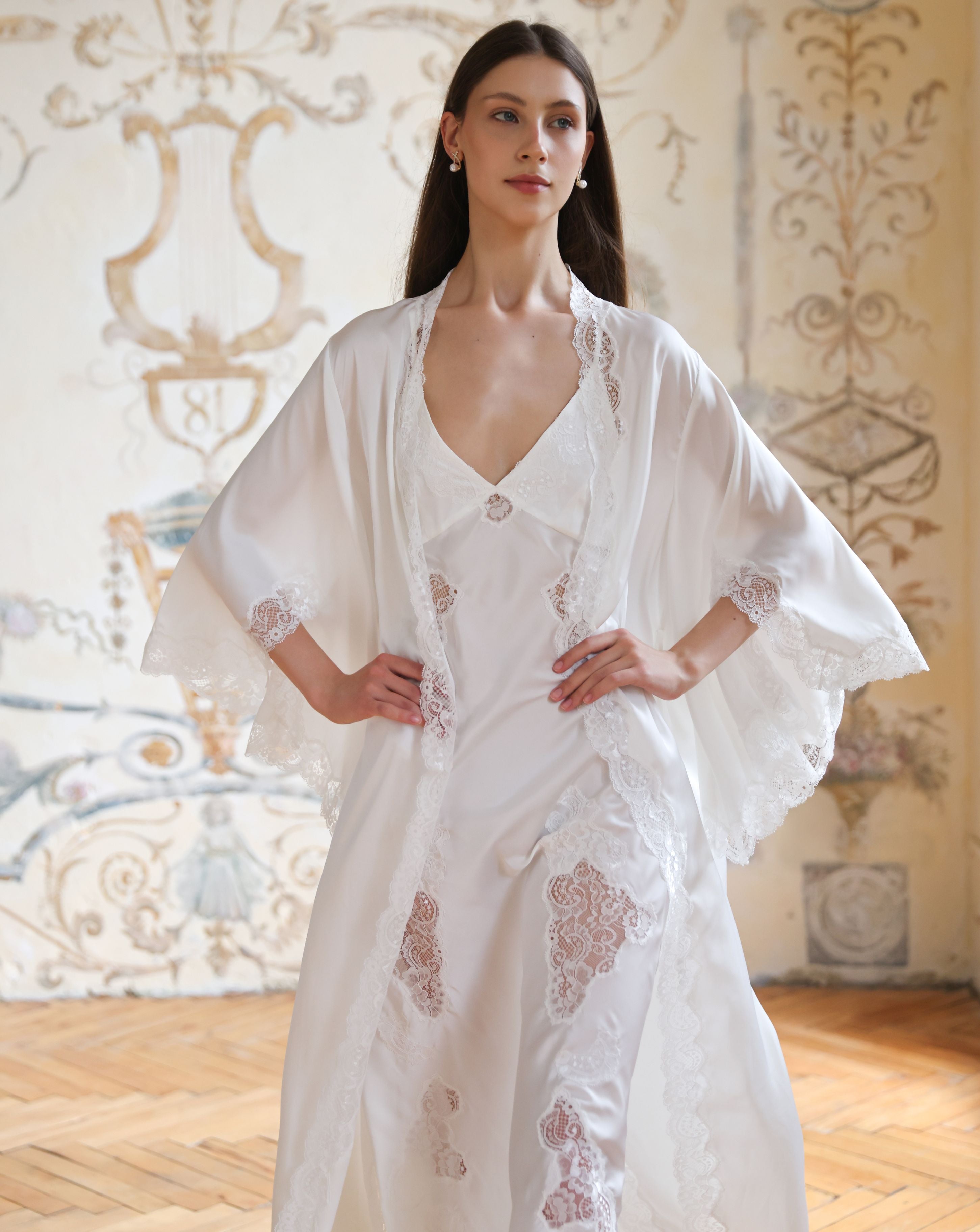 The Blossom Robe and Nightgown Set is a vision of elegance and softness. Delicate fabrics embrace the skin, while intricate lace floral appliqués add a touch of romance. This timeless set is perfect for those who appreciate grace and femininity in every detail.