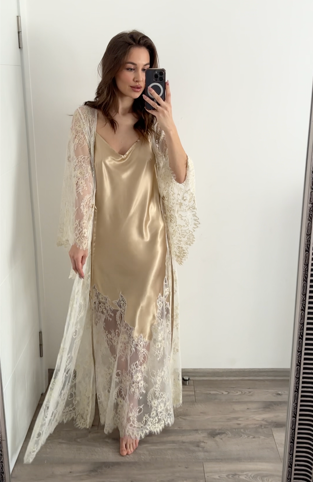We presented this pegnoir set to the bride-to-be We were thrilled to present it and she was even more excited to receive this luxurious gift!