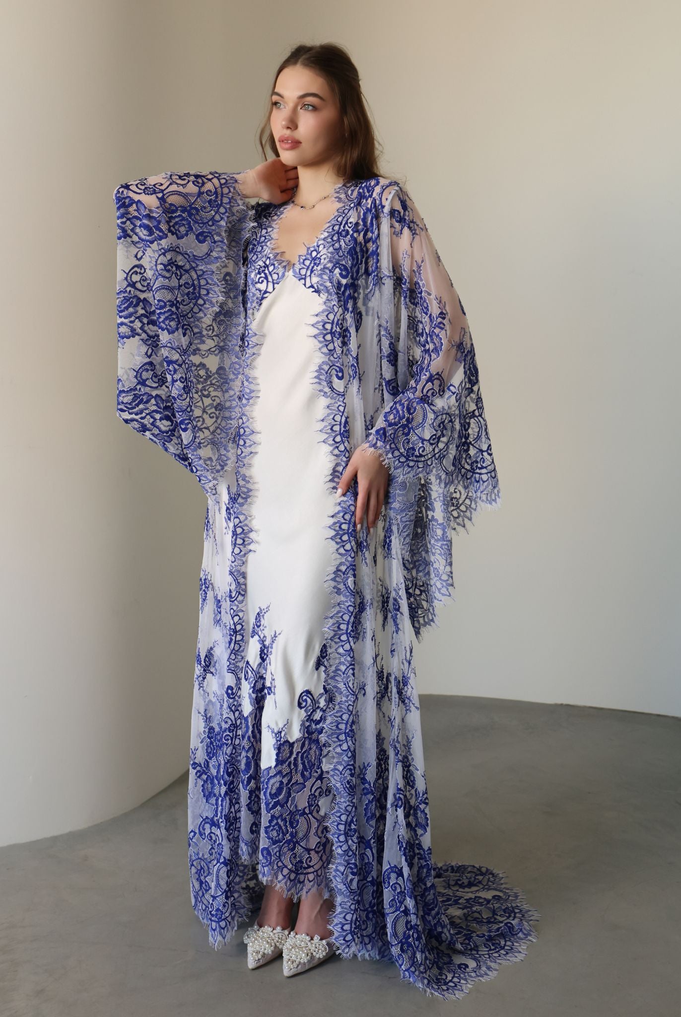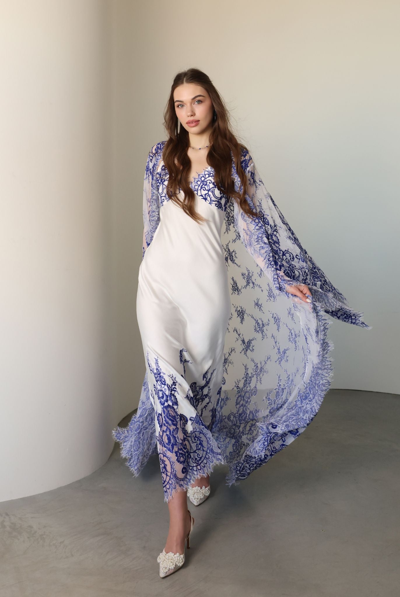 Feel beautiful and confident with the Midnight Blue Short Silk Nightgown. This elegant piece is made from premium, high-quality silk blend that feels incredibly soft and smooth against your skin. The material drapes gracefully over your body, creating a flattering look that celebrates your natural curves. We added delicate lace to the neckline and hem to give it a romantic and feminine touch.